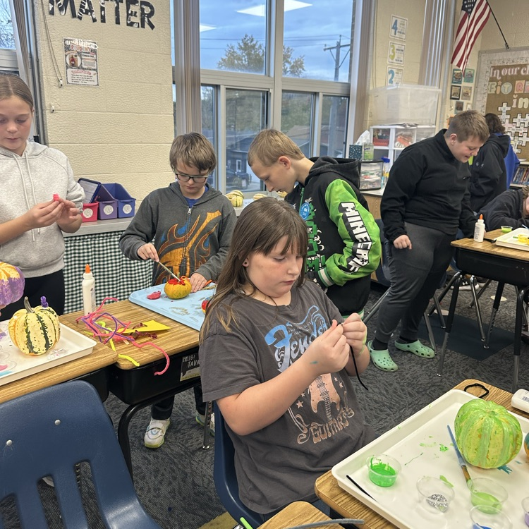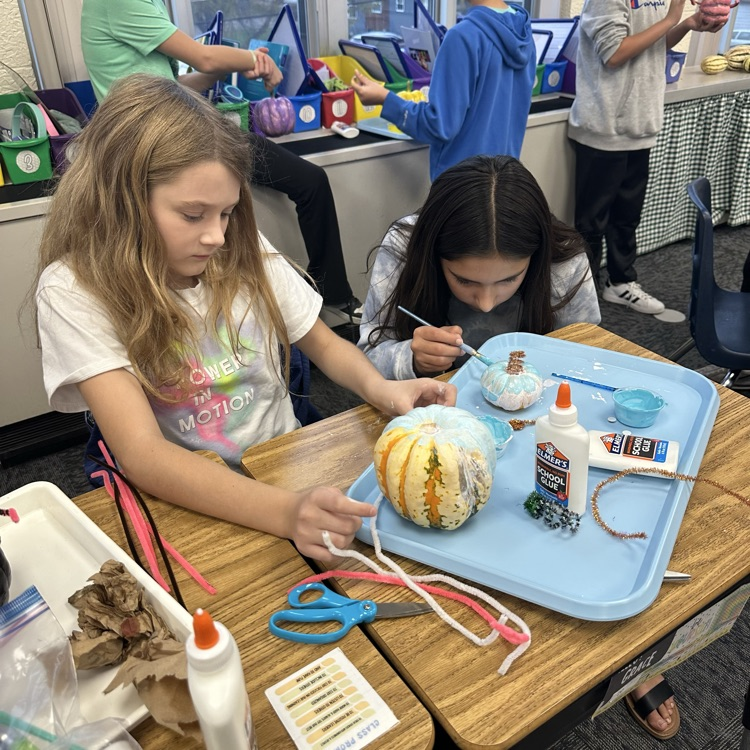 Our 5th graders got creative decorating gourds as main characters that will come to life in their narrative writing project! 🎃✏️ #ohmygourd #AberdeenPublicSchools